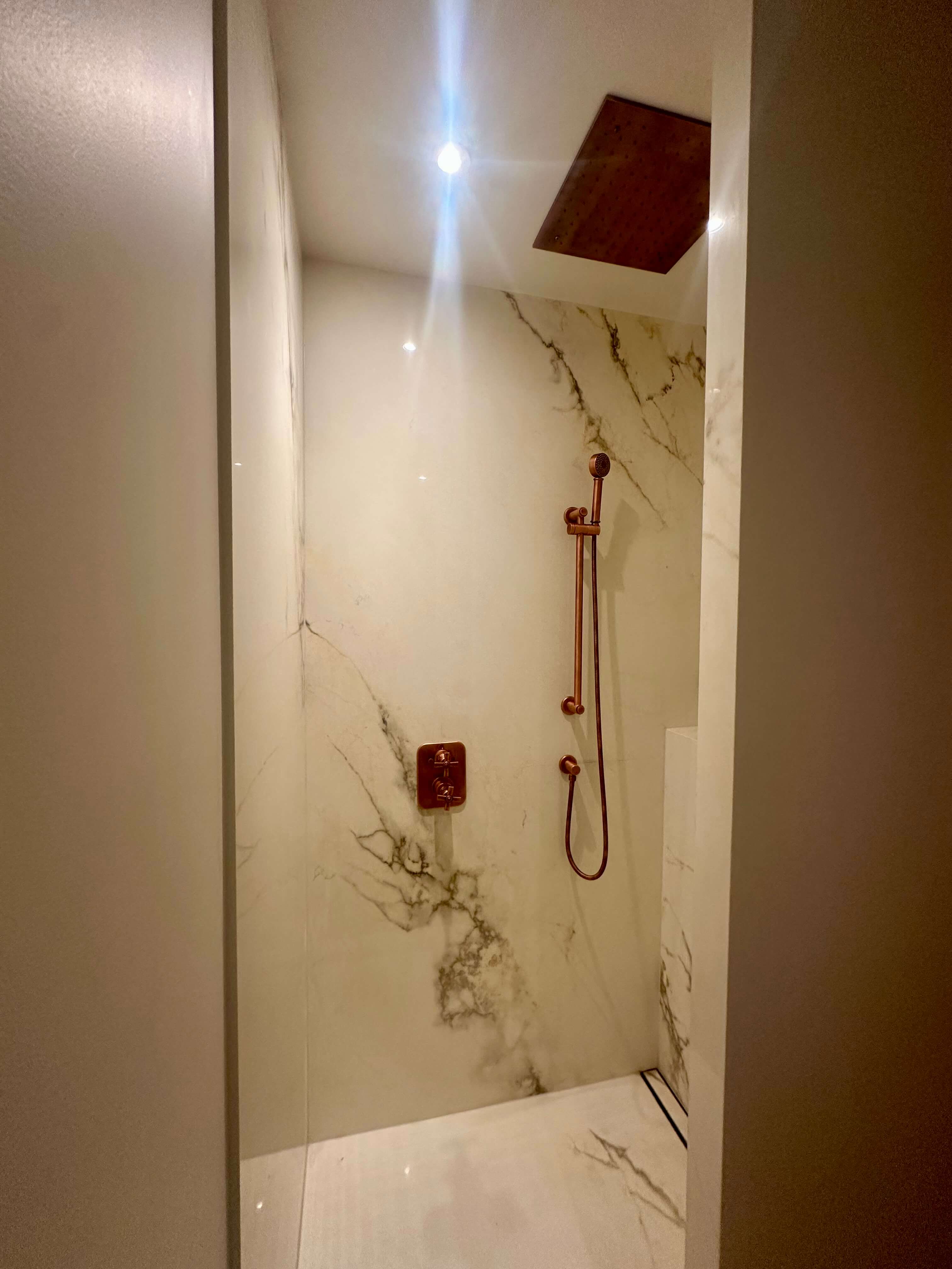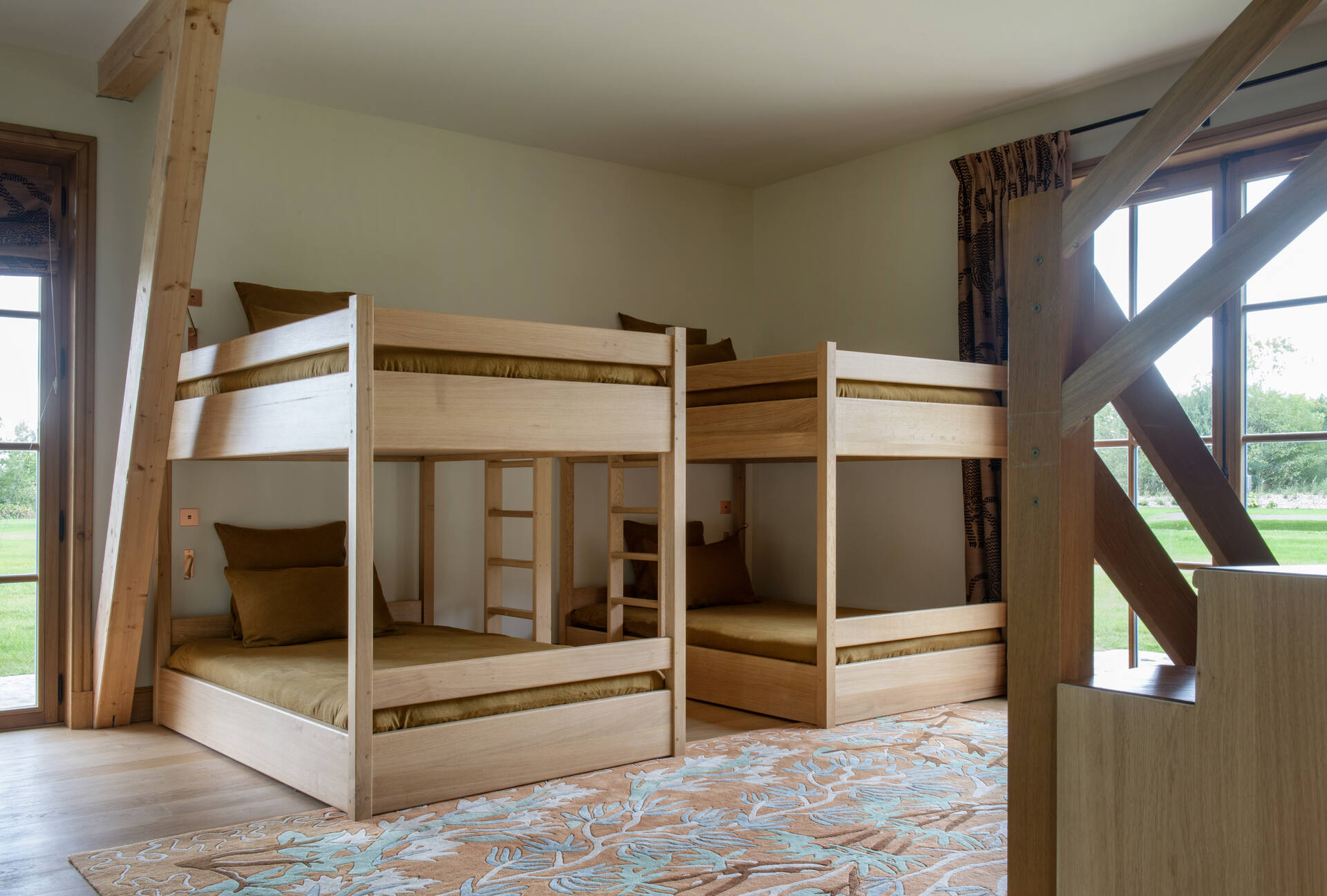 There are seven double en-suite bedrooms (six with walk-in showers, one with both shower and bathtub) and a dormitory (with shower and bathtub). Among these seven bedrooms: